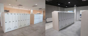 Kohteeseen toimitettiin tasakattoiset Kaso Trend -pukukaapit, joiden jalustapenkkien istuintasot olivat mäntylautaa. Lukoiksi tämä kohde valitsi. Abloy Classic -avainlukot.